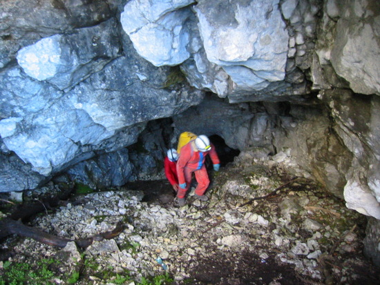 Für mein Gefühl höchst seltsam und unerklärlich, aber halt unheimlich real, hab ich im selben Gebiet 2004 noch eine Höhle gefunden, die vorher scheinbar noch niemand aufgesucht hatte. Ganz ähnlich zur ersten Story, dem Nichtwissen, wo denn die Almberghöhle, liegt, suchte ich 25 Jahre später, die Schneekegelhöhle, deren genaue Lage ich auch schon wieder vergessen hatte. Wir suchten wo anders - und fanden am Ende eine ganz neue massive Höhle, die leider vollkommen im Schotter erstickt ist. Aber was ist jenseits davon? Wir wurden in der Schneekegelhöhle vom Eis aufgehalten. Auch Schotter ist etwas, was entfernbar ist, ohne gleich den Fels ganz zu zerstören. Was verbirgt sich jenseits dieser Barrieren?