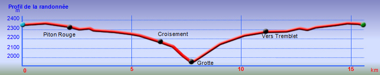 Se rendre à Bourg Murat puis suivre la route forestière du Volcan jusqu'au Pas des Sables - Descendre les lacets et pénétrer sur la Plaine des Sables - Rouler 2500 mètres sur la piste jusqu'au parking du sentier en direction du Nez Coupé du Tremblet - Prendre le sentier à droite et marcher en direction du Piton Rouge en se rapprochant petit à petit de la caldeira - Laisser le Piton Rouge sur la droite et poursuivre le long du rempart vers le Piton de Bert - Au premier croisement, prendre à droite vers Jacques Payet et marcher 1750 mètres avant de trouver sur la droite l'ancien sentier - Le suivre (ou ses vestiges) jusqu'à la grande grotte près de la Ravine la Source - Faire demi-tour par le même itinéraire.