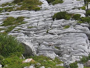 klassiches Karrengebiet mit einigen Schachtöffnungen direkt am