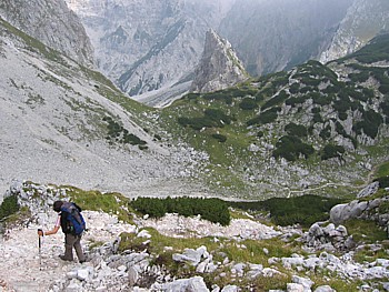 zuerst den weiten Schuttflächen, biegt dann nach links Richtung