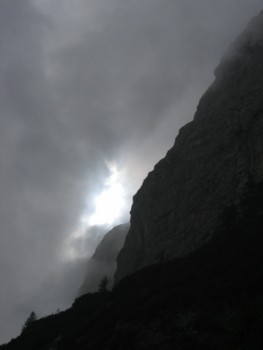 Von den vielen Alternativen, wie es weitergehen konnte, wählte ich das Wiederkommen an nächsten Morgen und den Aufbruck um 7 Uhr ins Wimbachgries. Nur ein anderen Bergwanderer war außer mir noch unterwegs, ansonsten war herrschte eine herrliche Ruhe im Tal. Den größten Teil des Anstiegs konnte ich ganz alleine genießen, erst in Hüttennähe nahm die Besucherfrequenz stärker zu. Immer wieder nutzte ich die Gelegenheit zu einem "stop, look and listen". Meistens war eine herrliche Ruhe, die allenfalls vom Rauschen des Baches oder leichten Windgeräuschen beeinflußt wurde. Gerade weil es so leise war, störte das permanente Gerede einiger vorbeikommender Wanderer dann mich umso mehr. Warum können die nicht für einige Zeit ihr Mundwerk unterbrechen? Hört man sich die Banalitäten zwangsweise an, um die es da meist geht, da hätte deren Mitteilung ruhig noch etwas auf sich warten lassen können.