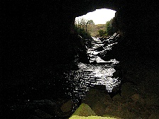 Ein Besuch des Bramabiau ist nur sehr unvollständig, wenn man nicht auch die Stelle besucht, wo der Bonheur verschwindet. Das tut wohl höchstens ein Promille der Besucher, aber der kleine Umweg lohnt sich. So einem monumentalen Tunnel hat man selten vor sich. Licht ist keines notwendig, da von der anderen Seite her bereits wieder Tageslicht durch eine weite Schachtöffnung, den Aven du Balset, hereinkommt. Bei hohem Wasserstand wird der gesamte Tunnel vom kleinen Fluß durchflossen, ansonsten verschwindet das Wasser schon vorher in verschiedenen Versickerungsstellen und tritt erst weiter drinnen in der Höhle wieder hervor. Bücken muß sich hier keiner auf weiter Strecken, alles ist groß und weit und monumental.