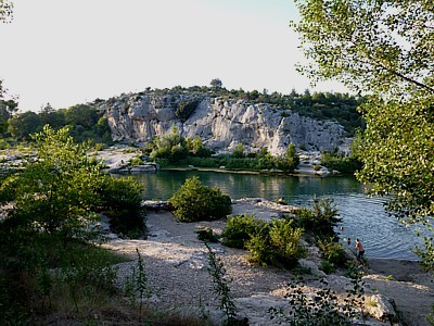Richtung Pont du Gard gibt es auf dieser Flußseite noch zwei Stellen, wo in Höhlen und Felsüberhänge unsere Vorfahren Bauten errichtet haben: Le Malpas und Saint-Privat.