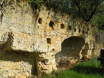 Vézéreabwärts erreicht man nach 10 km eine Stelle des Tales, die voller speläologischer Attraktionen steckt bei dem kleinen Ort Le Moustier. Er ist der Namensgeber für ein ganzes Zeitalter, das Mousterien, die Periode des Neandertalers. Es lohnt sich dort rumzusteigen. Leider ist heute auch dort alles abgeriegelt und abgezäunt, aber mit ein wenig Glück findet man doch ein paar Lücken, Pfade und offene Passsagen, die einen hautnahen Eindruck dann zulassen. Sogar kleinere Höhlen und Höhlenwohnungen verstecken sich in dem Hang.