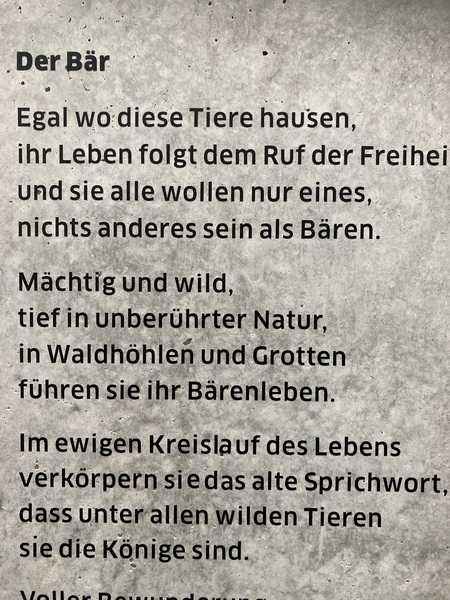 Kunsthaus Bregenz Ausstellung mit Werken von Malgorzata Marga-Tas "Der Bär" - Begleittext an der Treppenwand |