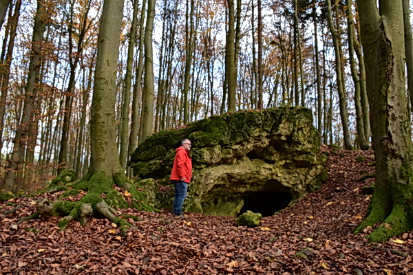 | aufzufassende Höhle | "Jägerhaushöhle...In der Enge zwischen Jägerhaus und dem Hofgut Bronnen liegt diese grossräumige, mehr als Abri aufzufassende Höhle direkt neben dem Wanderweg in der "Martinswand". Jantschke u.a., Mühlheim 73 |