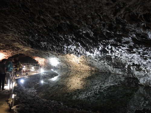Unsere Führerin war eine reine Freude. Locker, lustig, kompetent. Was für ein Unterschied zur Hermannshöhle, die ich Stunden vorher auch gesehen hatte. Die Räume sind sehr gut ausgeleuchtet, man hat sich überlegt, wie man die Qualitäten der Hohlräume am besten zeigen kann - was auch immer wieder menschliche Eingriffe in die "Natur" notwendig macht, aber man macht das geschickt. Die Highlights waren für mich, als sie ein wenig von der Geschichte der Höhle erzählte. Da gab es tatsächlich Tanzveranstaltungen! Damit hat man wieder aufgehört, warum? Rock im Fels? Verschreckt das alle Höhlentiere? Oder fangen auch die an, sich umzustellen? Wie diese einmal "Krone der Schöpfung", der/die Menschen/Menschen? Ein wachsender Trend: Heiraten in der Höhle! Pikant. Nachdem die Kirchen nicht mehr wirklich "ziehen" für viele, nachdem die Hochzeit im "Rathaus" oft zu nüchtern ist, zurück zu symbolträchtigen Orten! Ein geschäftstüchtiger Schweizer "verhired" sein Labyrinth für viel Geld an verheiratunswillige Paare. Warum dann nicht eine "Höhle"? Das passiert - und in wachsendem Maße. Erwartet man sich davon etwas? Kommt da Atavistisches wieder zu Vorschein, das so mancher schon auf ewig beerdigt zu haben glaubte? Ganz besonders gefiel mir ihre Anmerkung, daß die Bräute, die da "antanzen", in Higheels kommen. Das geht auf dem normalen Weg nur schlecht. Deshalb nutzt man heute wieder den "Betriebsstollen", durch den man halt die notwendigen Erhaltungsarbeiten sonst nur durchführt. Hier habe dann die Braut, noch, so mein Erinnerungsrest, noch "148 Schritte" um es sich noch einmal zu überleben, ob sie wirklich heiraten wolle. Kein dummer Gedanke. Wir haben später in Rübeland darüber nachgesonnen. Warum wartet eigentlich am Ende des Stollens nur ein "Ehemann" auf sie - warum nicht z.B. "5". Unter denen sie sich dann kurzfristig entscheidet. Oder umgekehrt: 1 Bräutigam und 5 mögliche Bräute. Eine moderne Form von "Bauer sucht Frau".