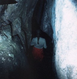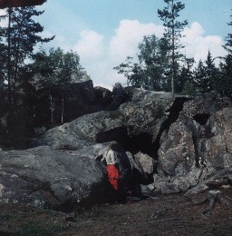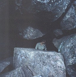 Einst wurde wohl ein riesiger Block aus Granit vom Gletscher hierher antransportiert und dann auf den Untergrund aus Gneis abgesetzt. Im Laufe der Zeit zerlegte sich der Monolit in viele kleinere Blöcke, die dann aufeinander und durcheinander zum Liegen kamen. Dazwischen kann nur der wenige Mensch hineinzwängen und so bis in die "Kirche" gelangen, eine Kammer von 14 m Länge, 1,5 - 9 m Breite und einer Höhe von 0,5 bis 3 m Höhe. Insgesamt hat man 60 m Ganglänge ermittelt.
