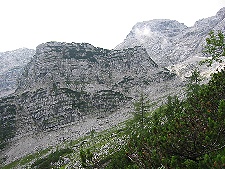 Wer da rauf geht, der hat sie sich eigentlich wirklich verdient. 2 Stunden steht da, und die braucht man. 800 Höhenmeter sind es, erst auf einem breiten Schotterweg und dann auf einer steil in die Höhe führenden Mischung aus Waldboden, Karren, Steinen. Man durchläuft fast alle Vegetationszonen. Vom Fichtenwald über die Lärchen bis hinein in die Latschen. Oben sieht man schon die kahlen Karstflächen, in denen sich selbst die Gräser schon verstecken.