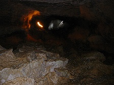 Ich bin dreimal dort gewesen. Und dann nicht mehr. Auf einmal hieß es, sie sei eine Schauhöhle. Ein Gitter versperre den Zugang. Man müsse sich nun anmelden. Ein Führer führe einen durch das Loch - gegen einen Obulus. Sogar einen Teppich würde es jetzt dort oben geben, daß eine bestimmte Stelle auch von weniger Geübten besser begangen werde könnte. Einen "Teppich"? Wahnsinn. In einer solchen wilden Naturumgebung einen Teppich? Der paßt nun wirklich dorthin. In unsere "Turbonatur"!