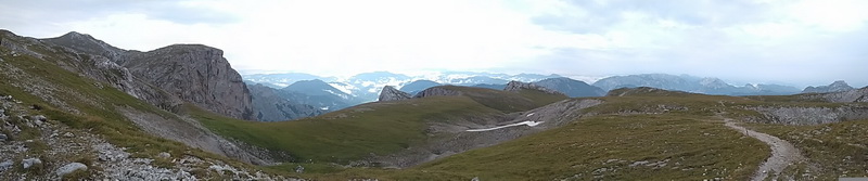 geneigten Plateau auf einem ausgetretenen Steig. Käme man aber zu weit links