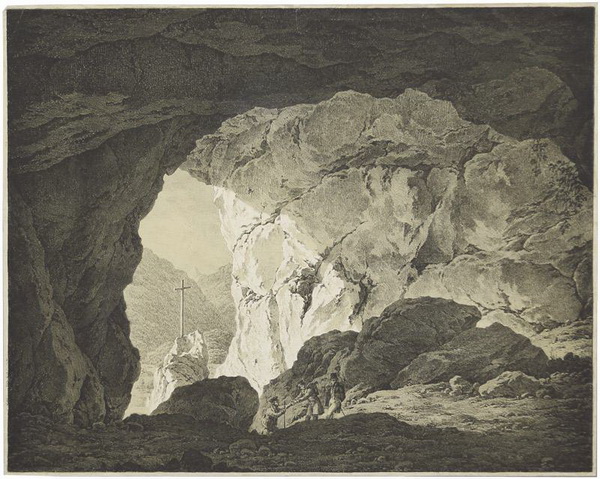 Ich kenne bislang kein älteres Kunstwerk, das sich mit einer Höhle mit den Bayerischen Alpen auseinandersetzt.