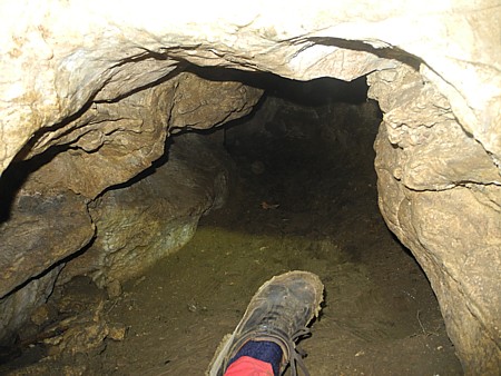 | Die ersten Meter in der Höhle - es geht abwärts |