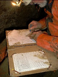 Klaus beim Zeichnen des Höhlenplans |