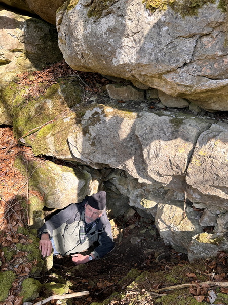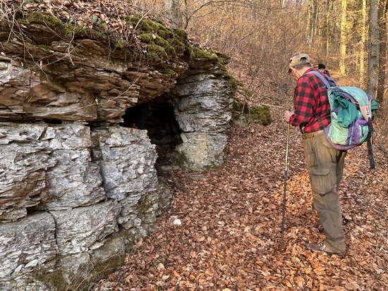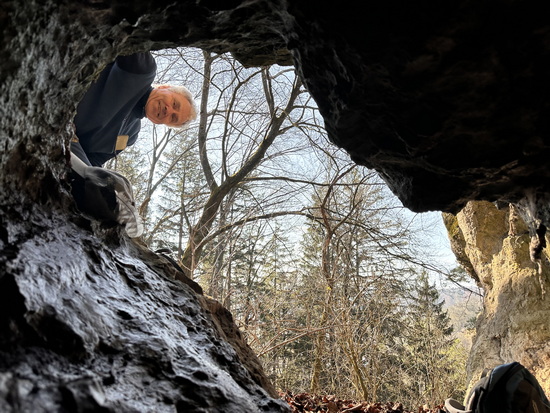 Unter "Höhlenforschern" gibt es eine wichtige Standardfrage: Wann gilt eine Felsöffnung als "Höhle", wann nicht? Bei einer Tour im März 2026 ins nördliche Altmühltalgebiet in der Nähe von Dietfurt um Breitenfurt, das am Zusammenfluß von Wissinger Laber und Bachhaupter Laber liegt, haben wir uns diese Frage wieder und wieder gestellt. Peter Timer von den Ingolstädter Höhlenfreunden hatte Wochen vorher in den teilweise mit Felsen durchsetzten Hängen einige neue "Objekte" gefunden und zeigte sie uns nun.