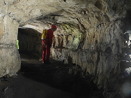 Links und rechts davon gibt es für den Höhlenschnüffler noch etwas - zwei kurze Höhlen. Die rechte davon ist ohne Licht von vorne bis hinten zu machen, bei der linken erreichen nur die ganz Mutigen ohne mitgebrachte Leuchte das Ende. Das "Schmideloch", das auch "Schneiderloch" heißt, ist ein breiter, bequem aufrechtbegehbarer Gang, der heute über eine kurze Eisenleiter erreichbar ist, führt tiefer und tiefer in den Berg. Irgendwann wirds so finster, daß man halt einfach nichts mehr sieht, obwohl es immer noch weiter geht. Leider kommt da nicht mehr viel. Irgendwann ist da einfach Schluß. Alles ist zu. Ende. Wie entsteht so etwas? Ist hier nur das verstopfte Ende einer einstmals viel größeren Höhle? Ist es nur eine Laune der Natur, daß es hier nur diese kurzen Höhlen gibt, oder haben hier vielleicht die Höhlenforscher einfach noch nicht so genau "nachschaut" wie im gar nicht so weit entfernten Mühlbach?