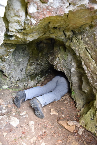 Seit einigen Jahren ist der Zugang zum "Schneiderloch" im Winter über die Leiter nicht mehr möglich. Aus "Fledermausschutzgründen" ist das Betreten ab dem 1. Oktober untersagt bis zum Frühjahr. Um derm Verbot mehr Nachdruck zu verleihen ist die Leiter von zwei Platten, eine davon mit Beschriftung mit Begründung (warum man den Zugang sperrt) abgedreüßteckt, so daß man schon ein geschickter Kletterer sein müßte, um sich seitlich daran hinaufzuwinden. Aber wer unbedingt in eine Höhle will, daneben ist ja noch ein Eingang, kastenförmig, breit und einige Meter in den Berg führend. Dann nähert sich der lehmige Boden der Decke und da ist erst einmal Schluß. Gräbt da vielleicht einmal jemand?