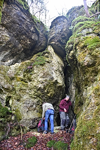 7. März 2019 Der Mißerfolg bei der Höhlensuche rief nach einer Korrektur. Ich machte mich mit Peter Timer, sicherlich momentan die "Höhlenkoryphäe" für das Altmühltal, und seinem Enkel Philip auf, um zur Höhle aufzusteigen. Vorher zeigte Peter mir noch eine unbekannte Spaltenhöhle auf der anderen Talseite. Es stellte sich heraus, die ganz wo anders war, als Peter sie anfangs gesucht hatte. Wir gingen die Hänge hinauf und hinunter und immer weiter, aber es zeigte sich, daß sie ganz wo anders dann war. Eigentlich ist das ja nicht schlimm, ganz im Gegenteil, denn so wird das Gelände gründlich durchkämmt und vielleicht wird ja auch diese Weise wieder was ganz Neues gefunden.