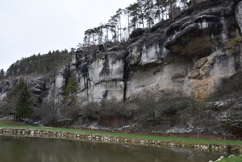Püttlachaufwärts von Tüchersfeld in Richtung Pottenstein kommt linkerhand die nicht zu übersehende Felsformation der Bärenschlucht. Dort ist auch ein großer Campingplatz und eine Gaststätte. Schaut man sich die spektakulären Felsenwände genau an, dann ist der Prachteingang zu einer Höhle nicht zu übersehen, der allerdings wohl nur Kletterkünstlern zugänglich ist. In der Schlucht liegt talaufwärts links der Eingang in eine horizontale Höhle.