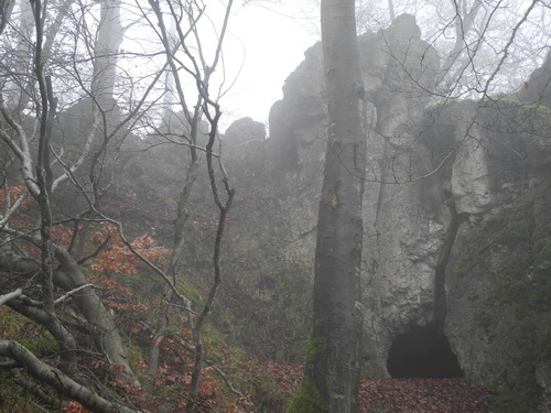 Wer etwas über die Höhle erfahren will, wird mit einer Informationstafel gut bedient. Dort heißt es, daß die kleine Höhle "nur schwer zugänglich" sei. Weil der kurze Weg zum Eingang nicht gesichert sei, rät man vom Besuch der Höhle dringend ab. Nun, da kann ja jeder hingehen, viele tun das wohl auch mit Kindern, da will man sich wohl absichern und keinerlei Risiko eingehen.