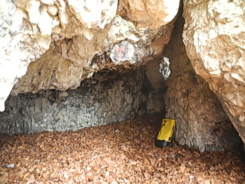 Tatsächlich hat die Höhle nicht nur einen Eingang, sondern derer gleich mehrere, aber zwei davon sind sicherlich nichts für Normalsterbliche, denn sie gehen durch kleine Schlupflöcher hinein in den zentralen Innenraum. Das größere Eingangsportal liegt ein wenig verborgen in der Felswand. Dorthin kann man nur auf einem schmalen Pfad gelangen, der absolute Vorsicht erfordert, sonst könnte man weit hinabstürzen.