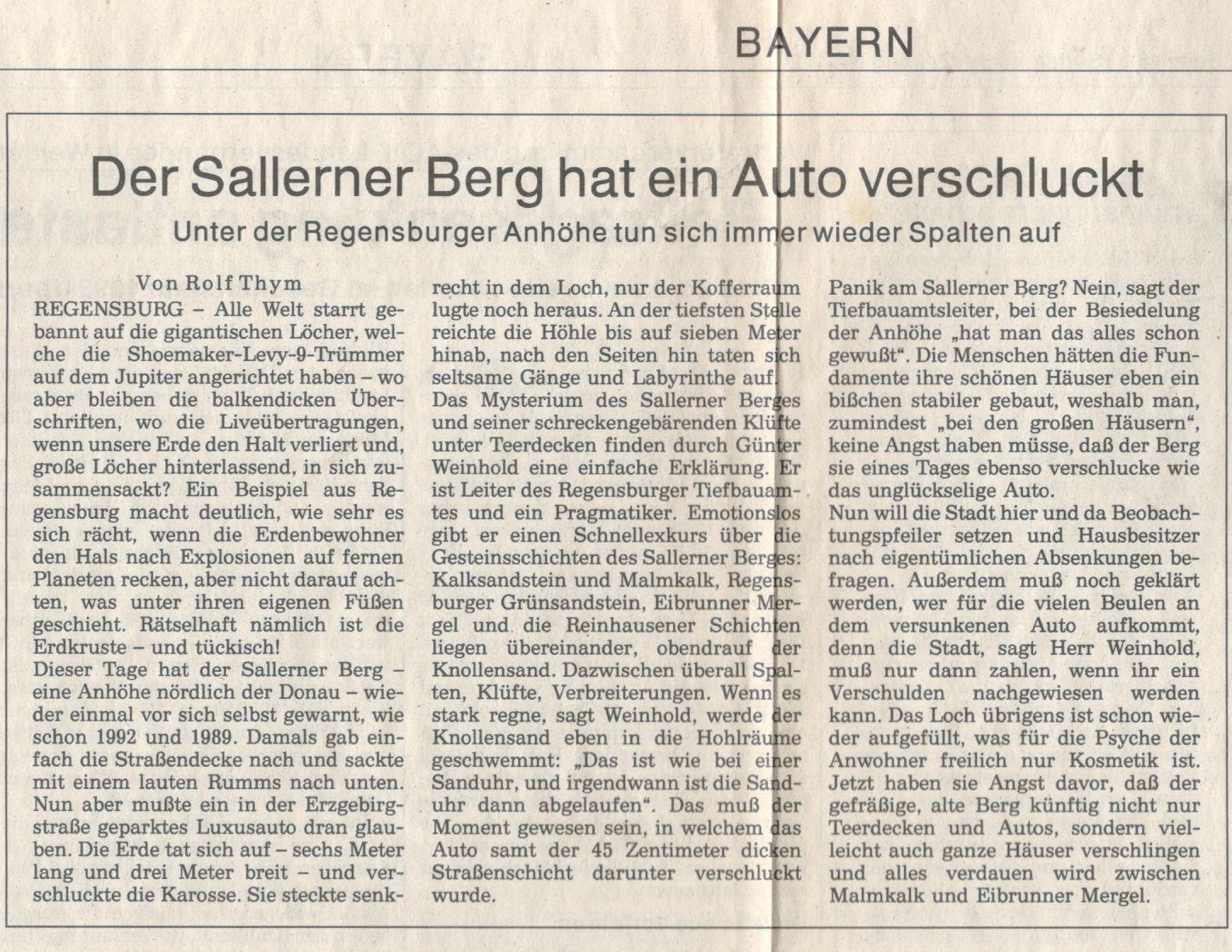 Thym, Rolf (1994): Der Sallerner Berg hat ein Auto verschluckt, Süddeutsche Zeitung Nr. 172, 28. Juli 1994, S. 4//11