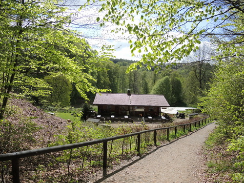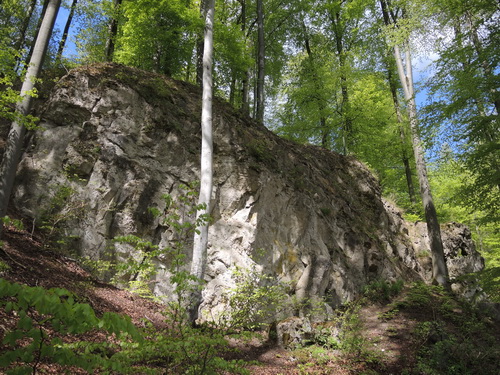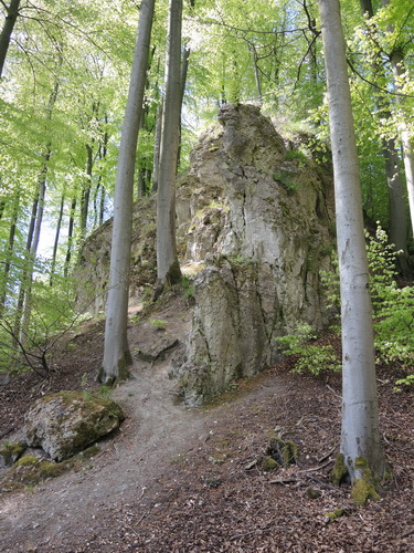 Ein mit Holzbalken abgegrenzter Weg führt von der Höhle hinauf auf den Gipfel des Steinbergs. Von dort hat man einen Prachtblick auf die Umgebung. Weiter geht es auf einem Wanderpfad, vorbei an herausragenden Felszacken, immer weiter bis zur Einhornhöhle.