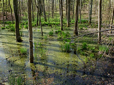 erreicht. Ein Fußweg führt rechts hinab, im Frühjahr durch