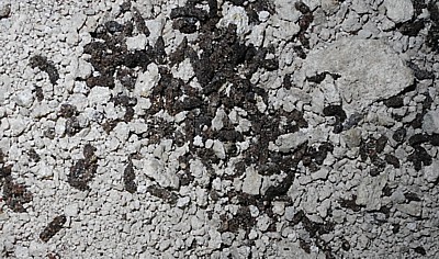 Wohl die Reste der Mahlzeiten von Fledermäusen auf dem Felsboden |