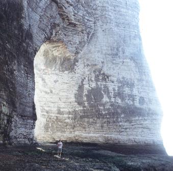 Höhlenmäßig muß man sich links halten. Je nach Wasserstand ist dann ein ziemlich langer Abschnitt der Küste begehbar. Man kann drei riesige Torbögen durchqueren, zum Teil auf eingebauten Eisenleitern, die einem den Aufstieg durch die Felsriegel erleichtern. Hier oben wäre wohl auch ein Rückzugsort, sollte man vom anrückenden Meer eingeschlossen werden. In den Durchgängen ist wenig zu sehen, außer einigen Einritzungen in den relativ weichen Kreidefelsen. Die bedeutendste Höhle ist der "Trou à l'Homme" oder auch "grotte à l'Ilôt", die 52 m lang ist und mehr oder weniger mit Kieselsteinen verfüllt ist. Der Eingang, etwa 20 m breit, ist auf unzähligen Postkarten, Fotographien und Gemälden festgehalten. An dieser Höhle setzt der Tunnel an, der künstlich geschaffen worden ist, um den "Plage de Jambourg" leichter zugänglich zu machen.