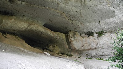 Unterwegs stößt man auf einige kleine Höhlen, die meisten vom Balmentyp, also bessere Felsdächer: die grotte aux chiens, die grotte aux hirondelles und die grotte aux boeuf. Die ist am eindrucksvollsten, aber hat auch bald ein Ende. Meistens wird die Tour mit einem Aufstieg nach La Maline beendet, 350 Höhenmeter geht es dazu auf sehr gut ausgebautem Weg wieder nach oben bis zur Straße. Dort hat man dann das Problem, wie man wieder zurückkommt. Vielleicht nimmt einen ja ein mitleidvoller Autofahrer wieder zurück mit nach La Palud und weiter.