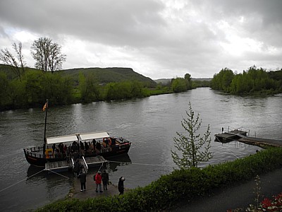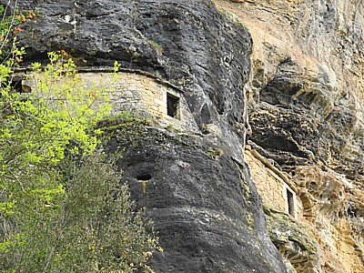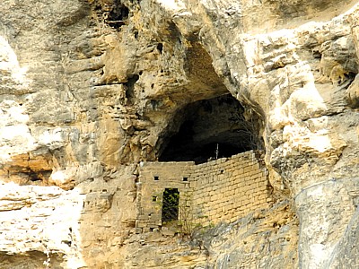 Bei Belcastel mündet von Süden her die Ouisse in die Dordogne. Kurz danach ist der Schauhöhleneingang zur Lacavehöhle nicht zu übersehen. Mit einem kleinen Züglein kann man sich in der Berg fahren lassen und das übliche Schauhöhlenerlebnis durchmachen. Immerhin lassen sie das Fotographieren ohne Stativ und Blitz zu! Fährt man noch ein paar Meter weiter, dann ist ein großes Höhlenportal auszumachen. Ein Bächlein kommt da aus dem Berg und man kann ihm für einige Meter über Schlamm und Fels bis zu einem See folgen, ohne daß man auch nur eine Taschenlampe bräuchte.