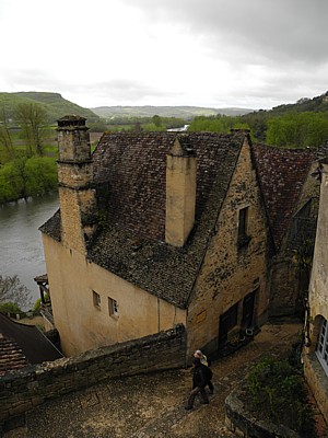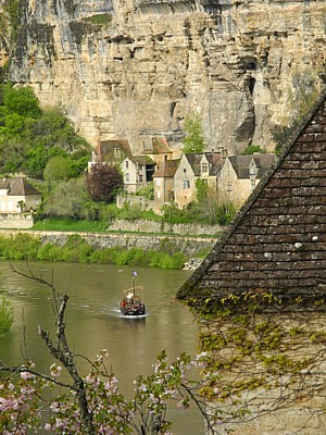 Domme, das zu den Les plus beaux villages de France heute zählt, liegt nicht direkt am Fluß, sondern 250 m oberhalb auf der Hochfläche. Das ist kein Zufall, sondern planerische Absicht. Es gehört zu den 400 Bastiden, die im Mittelalter dort gebaut wurden, um der Bevölkerung in den unruhigen und kriegerischen Zeiten, die besonders durch die Auseinandersetzungen zwischen Engländern und Franzosen kamen, die um die Herrschaft in dieser Region kämpften, verursacht waren.