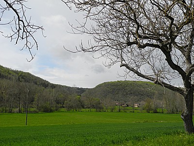 Es war viel spannender, in das Ceoutal hinunterzufahren und nach dem Eingang in die Trou-du-Vent-Höhle zu suchen. Er liegt in der Nähe der kleinen Ortschaft Bouzic. Als Fremder wird es nicht leichtfallen, dorthin zu finden. Wir haben es intensiv versucht, sind aber 2012 frustriert gescheitert. Leicht findbar war der ansehnliche Quelltopf, aus dem das Wasser austritt. Ein Waschhaus steht gleich dahinter und ein kleines E-Werk. Man soll ja am Eingang spüren können, daß sich dahinter ein sehr großes Höhlensystem befindet, weil starker Wind dauernd aus der Eingangsöffnung streicht, alleine, wo der lag, das konnten wir trotz intensiver Suche nicht feststellen.