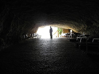 1895 trug sich mal ein Besucher in griechischer Schrift an den Höhlenwänden