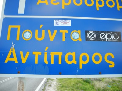 Mauern und die in Griechenland zur Zeit überall vorzufindenden Eisenzäune. Sie