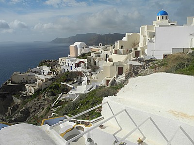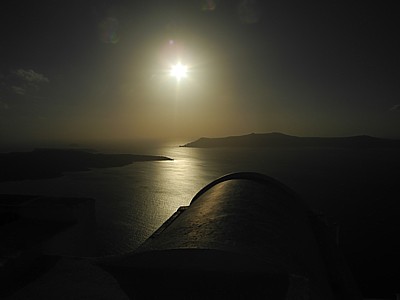 In Santorin sehen manche gar eine "Weltsehenswürdigkeit". Die Insel sind die sichtbaren Teile des einzigen "noch sporadisch tätigen Vulkans des östlichen Mittelmeers" (MMV, S. 657). Die heutige Form ist mehr als 3.500 Jahre alt. Damals zerriß eine Eruption das bis dahin kegelförmige Zentrum der Vulkaninsel und brachte eine ganze Zivilisation mit einem Schlag zum Verschwinden. In den folgenden Jahrhunderten und Jahrtausenden kam es immer wieder zu Veränderungen und dem Neuauftauchen einiger kleinerer Inseln in der Umgebung. Erdbeben treten immer wieder auf. Zuletzt zerstörte 1956 eine größere Erschütterung in einer einzigen Minute den Hauptort Fira und auch Oia, das Schmückstück direkt oberhalb der 300 m hohen Felswand des Kraterrandes. Inzwischen ist das meiste wieder aufgebaut und in einem hervorragenden Zustand, aber ein paar letzte Reste sieht man immer noch.