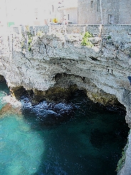 | Die Felsküste von Polignano mit der Eingangsumgebung |
