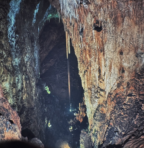 Ich war nicht das erste Mal in der Grotta Gigante. Immer hatte sie riesig und gleich ausgesehen. Und ihre Beschränkungen waren schon immer die selben gewesen. Man durfte, noch nicht, drinnen fotographieren. Dabei ist das heute doch überhaupt kein Thema mehr! Die digitale Fotographie ist so raffiniert, daß nicht mal mehr das Blitzen notwendig ist. Das Licht der Schauhöhle genügt und man kann trotzdem Mehr-Sterne-Bilder praktisch im Vorbeigehen machen - sofern man das Motiv und die Ausleuchtung richtig einschätzt. Wer hat hier so einen Haß auf die Fotographen oder sitzt so massiv auf seinem Geldsack? Dabei läuft das Ganze ja unter dem Namen des ältesten Höhlenvereins der Erde, den es heute noch gibt! Ist das nicht eine Schande? Wen "schützt" man mit einem solchen Fotographierverbot und wen will man ausschließen?
