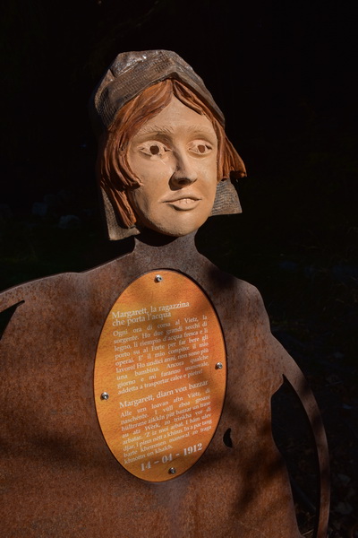 Man bemüht sich sehr um die Gäste und bietet ihnen auch z.B. mehrere bezeichnete Wanderwege an. Einer führt zu einer besonderen Attraktion, die allerdings auf eine eher schwermütig und traurig machende Periode in der Geschichte hinweist: den 1. Weltkrieg und die Zeit davor. Gerade in den ersten Kriegsjahren spielte die Festung Lusern oben auf dem Berg und die Vorwerke dazu eine gewisse Rolle, ohne daß sie allerdings je erobert worden ist. Für das Dorf in der Nähe war der Krieg eine Katastrophe. Die Einwohner wurden ausgesiedelt, die Häuser wurde zerstört - und nachher wurde es wieder aufgebaut, teilweise unter Verwendung des Materials, das man das vorher mit Körperkraft hinaufgeschleppt hatte und nun wieder auf dem Rücken herunterbrachte. Auch Kinder wurden da eingesetzt - wirklich unter die Haut gehende mehrsprachtige Informatonstafeln am Rundweg zum Thema der Geschichte des Orts mit lebensgroßen Eisenfiguren regen zum Nachdenken an - was man am Schicksal einer 11jährigen vorgeführt bekommt.