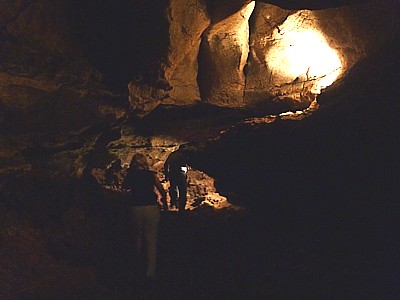 Es gibt darin sogar eine Art Schauhöhle, die Cueva del Agua. Jedenfalls muß man ein paar Euros rausrücken, eh der Verwalter des Areals einen in Ruhe ziehen läßt. Endlich ist hier wieder eine Höhle, in der man nicht auf wohl meist recht kostspieligen Gitterrosten, erhoben über den Höhlenboden, einen Hohlraum durchmessen darf. Man latscht einfach auf dem Höhlenboden, ein paar Lampen, elektrisch angetrieben, geben Licht, es gilt aufzupassen, daß man nicht mit dem Schädel an die Decke knallt, so wie ich, irgendwann ist Schluß für alle, die kein eigene Beleuchtungsquelle dabei haben. Kein Führer begleitet einen, keiner erklärt einem irgend etwas - was für ein Refugium für Einfach-in-eine-Höhle-Hineinschauer und nicht Zwangsbeschultwerdenwollender!
