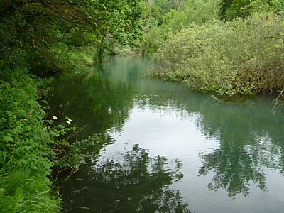 Die Menschen gehen hin, sind glücklich, fotographieren sich und ihre Lieben in allen möglichen Posen und Zusammenhängen. Direkt bei der Quelle, dort wo auf einmal aus dem Erdboden das Wasser wieder zu Tage tritt, quillt, immer mehr wird, weil ganz in der Nähe noch mehrere Quelltöpfe sind. Gibt es hier Karstquellen? Aus keiner der mir zugänglichen Webseiten konnte ich irgendetwas darüber erfahren.
