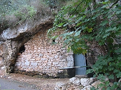 Gar nicht so weit entfernt, etwas ins Landesinnere Richtung Manacor wirbt die Cova del Hams um Besucher. Die muß einfach unter dem gleichen Management sein, weil sie ganz ähnlich verwaltet ist. Riesige Reklametafeln machen auf sie aufmerksam. Ein gigantischer Parkplatz ist da, und die gleichen Verbote wie in der Cova del Drac. Auch das Preis-/Leistungsverhältnis ist außer Rand und Band (aber das gilt auch für die anderen Schauhöhlen auf Mallorca, die ich schon kennengelernt habe. 9 für einen Eintritt / zur gleichen Zeit hat in Deutschland die Teufelshöhle in der Fränkischen Schweiz 3.50 für einen Eintritt verlangt! Ein Unverschämtheit ist das im Grunde!) Was man dann zu sehen bekommt, hinter einer dicken Tresortür verschlossen, ist unteres Mittelmaß. Kleine Räume, kleine Tropfsteine, aufgepeppt durch farbige Beleuchtung, am tiefsten Punkt der Höhlensee - auf ihm kam dann erwartungsgemäß ein Kahn daher, Musik hob an, ein Geiger und ein Keyboardspieler gaben populäre Melodien zum besten, ein Kahnlenker steuerte gewissermaßen Charons Nachen durch die freigelassenen Stellen im Fels. Irgendwann kommt der "Höhepunkt", die Kammer, die der Höhle den Namen gegeben hat. Ein niedriger Raum voller wildgewachsener Excentriques, ungewohnt sicherlich für die Schauhöhlenbesucher, die dauernd in "Käfighaltung" durch die Höhle geschleust werden. Der Mensch ist das größte Raubtief dieses Planeten und das bekommt man für viel Geld die ganze Zeit über bewiesen, weil man beständig in einem Gitterkäfig durch die Höhle geleitet wird. Endlich kommt der Ausgang in einer großen Steilwanddoline. Dort habe ich wirklich was Besonderes gesehen. Einen unglaublichen Baum. Der drängt sich aus der Felswand, hatte das Höhlendach unbarmherzig über sich und war dadurch die ersten Jahrzehnte seines Lebens andauernd in seiner "natürlichen" Entwicklung vollkommen gestört. Nach oben ging nichts, da war der Fels. Aber irgendwann war der Fels zu Ende, dann konnte er nach "oben" wachsen und tut das auch. Ein Wunder des Lebens!