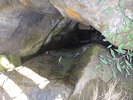 verschwindet im Berg, war zu einem kleinen Rinnsal geschrumpft. Am Eingang steht