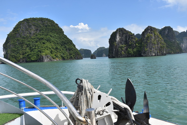 Am nächsten Tag machte ich eine Standard-Tagestour durch die Halong Bay und war auch zufrieden. Mehr wäre möglich gewesen, aber dann wäre halt der Hunger darauf gestillt gewesen. So bleibt er eben ein wenig - und vielleicht bleibe ich ja auch einmal, wie Millionen andere, für wenigstens eine Nacht auf dem Meer zwischen den abweisenden Felsen der Halong Bay. Auf mich "warteten" noch andere Ziele.