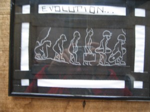 | Der Patron der Höhlenforscher: der heilige Benedikt mit Schwimmreifen im Long Black Cafe |