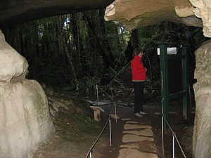 Hill Cave zweigt ein Waldweg zu zwei besuchenswerten Höhlen ab,