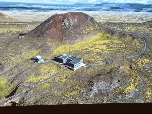 gezeigt im November 2025 auf dem Forscherfest 2025 des Salzburger Höhlenvereins Foto: Gerhard Völkl Aufnahme aus dem Hubschrauber auf den Vulkangipfel mit dem Kratereingang und Schauhöhlenanlage |