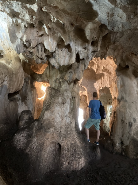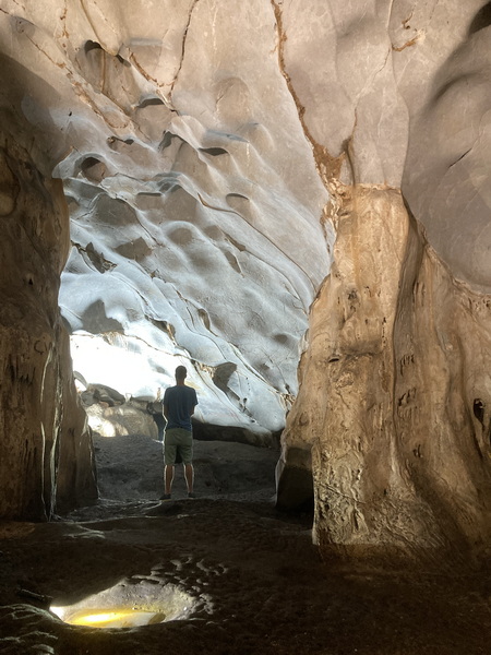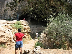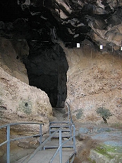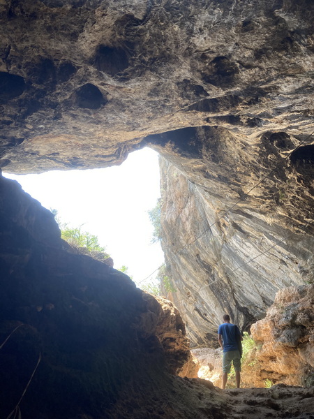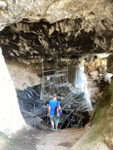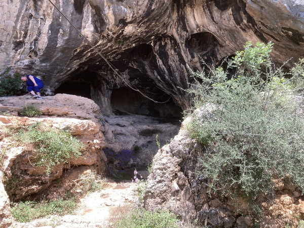 Hinterausgang dann den Felsweg hinauf zur 100 höher liegenden Höhle zu kommen.