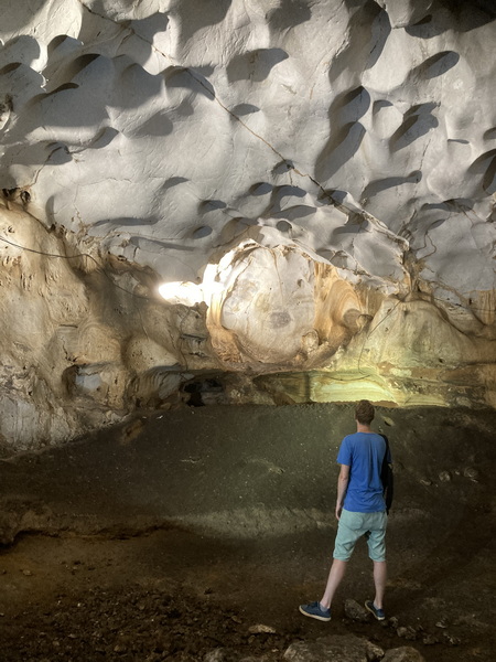 Von den vielen Besuchern lassen sich offenbar die vielen Fledermäuse nicht stören, die in zwei hohen Deckenkolken im untersten Höhlensaal sich bei unserem Besuch im Juni 2023 aufhielten. Das auffällige Gekreische war nicht zu überhören.